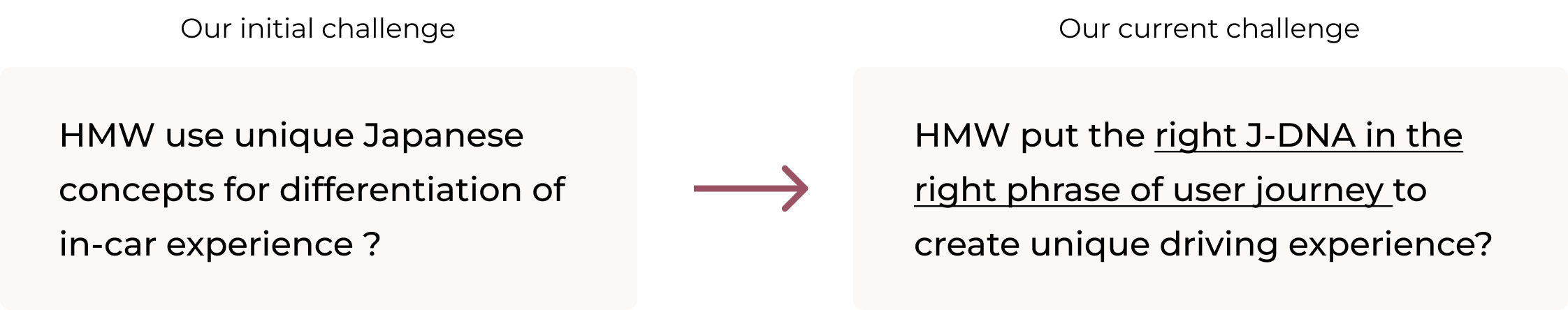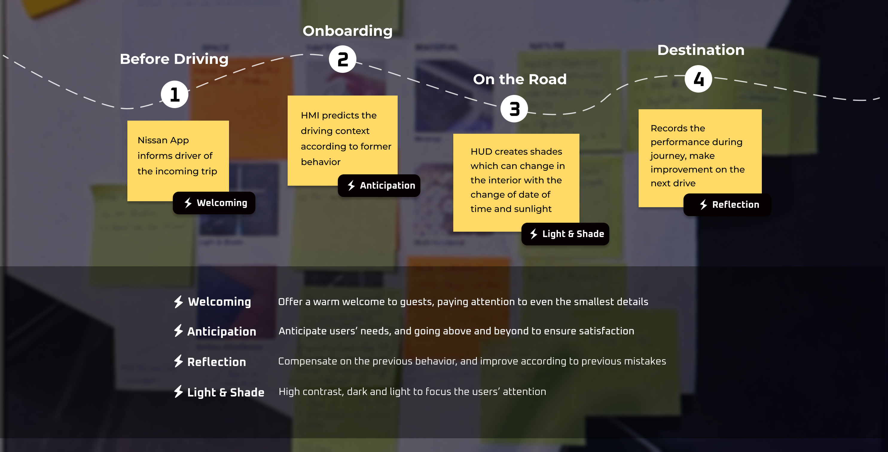 Based on the prioritization matrix, we were able to focus on the right J-DNA (origami) in the right phrase of user journey (during driving) to kickoff the design.