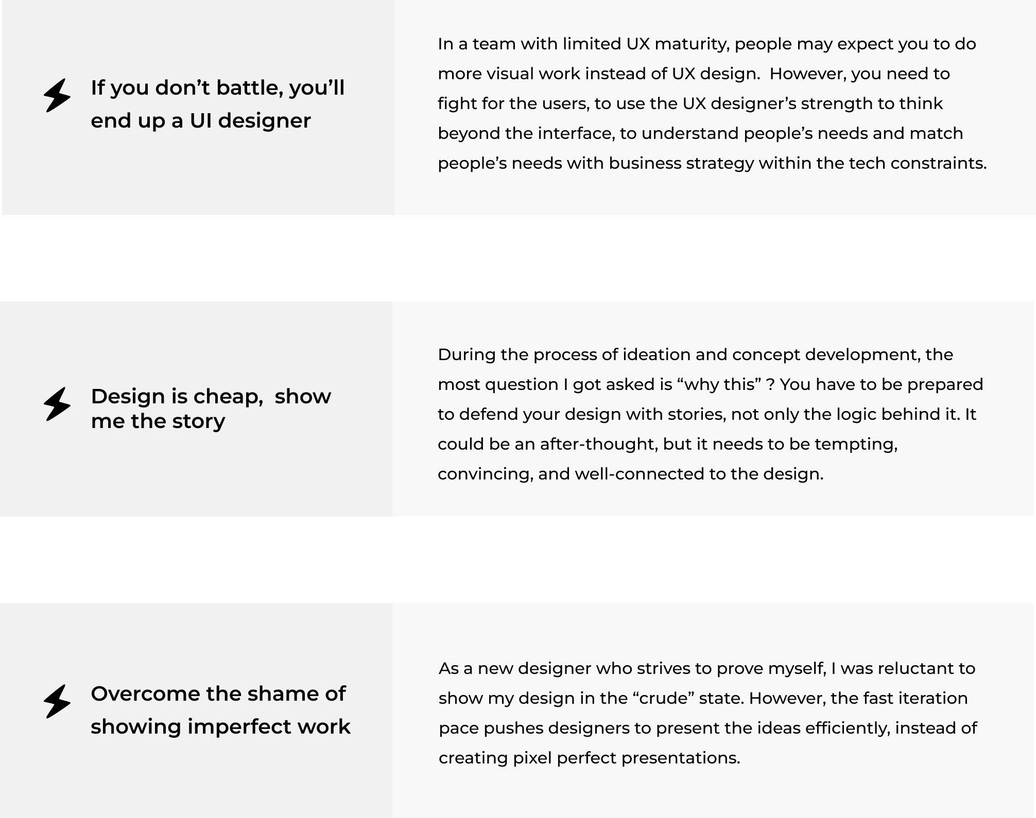 To cluster the insights from the user interviews, I led the affinity mapping session with designers and product managers. We followed the certain procedures: