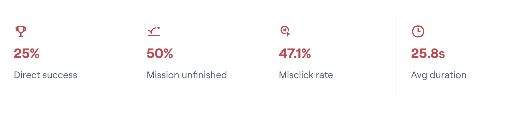 Results: only 50% of users finished the task and the misclick rate is really high. 3/4 of users got away from the expected path and 3 testers got lost!